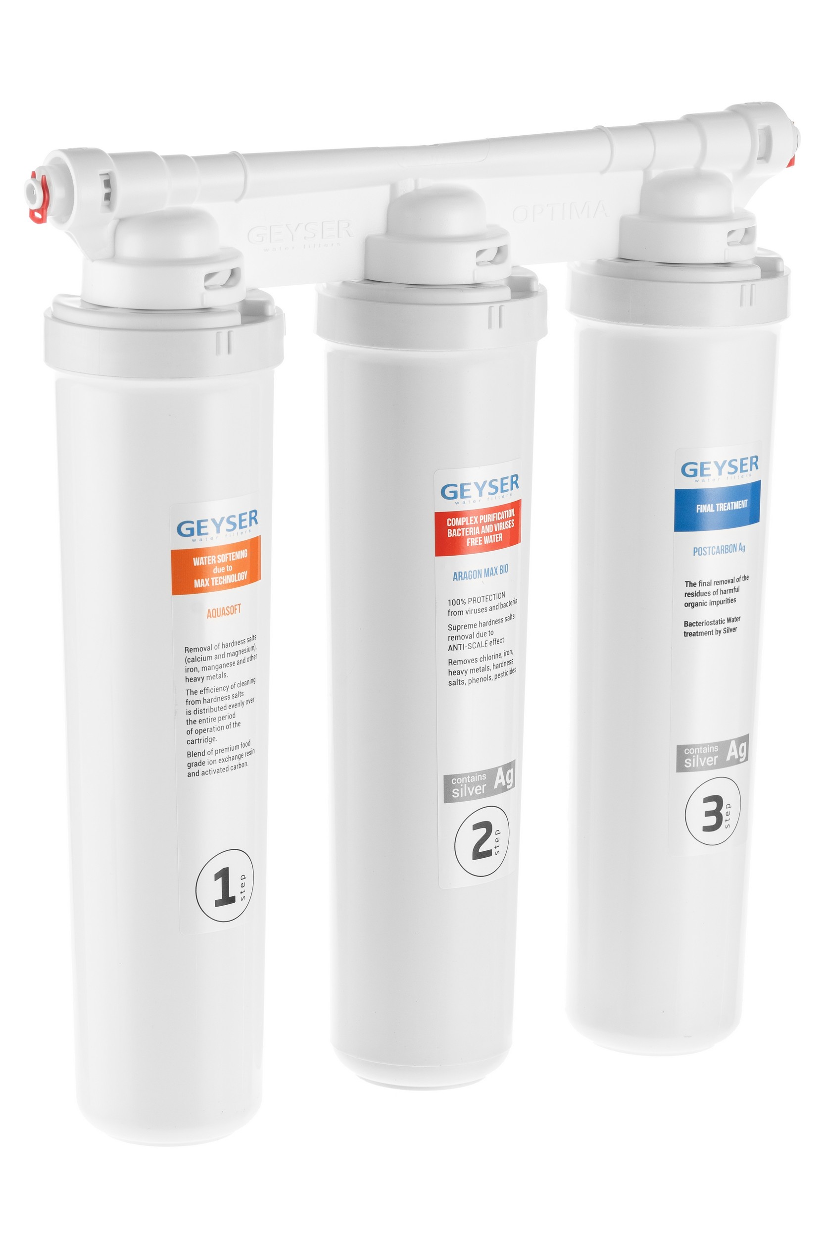 Уникальный фильтр Гейзер Оптима Макс Био специально разработан для комплексной очистки воды и предотвращения образования накипи. Фильтр сочетает в себе инновационные технологии: технологию непрерывного умягчения и технологию удаления вирусов и бактерий. Благодаря использованию новейших фильтрующих материалов — картриджа Арагон Смарт Макс Био и специальной комбинации ионообменных смол АкваСофт Смарт срабатывает эффект АнтиСкэйл, который позволяет исключить появление накипи и сохранить природный минеральный состав воды. Способность фильтра Гейзер Оптима Макс Био устранять накипь в 6 раз выше, чем у традиционных фильтров для жесткой воды! При этом фильтр не нуждается в периодическом обслуживании (регенерации). Картридж Арагон Смарт Макс Био эффективно защищает от вирусов и бактерий – делает воду абсолютно безопасной. Воду можно пить без кипячения.