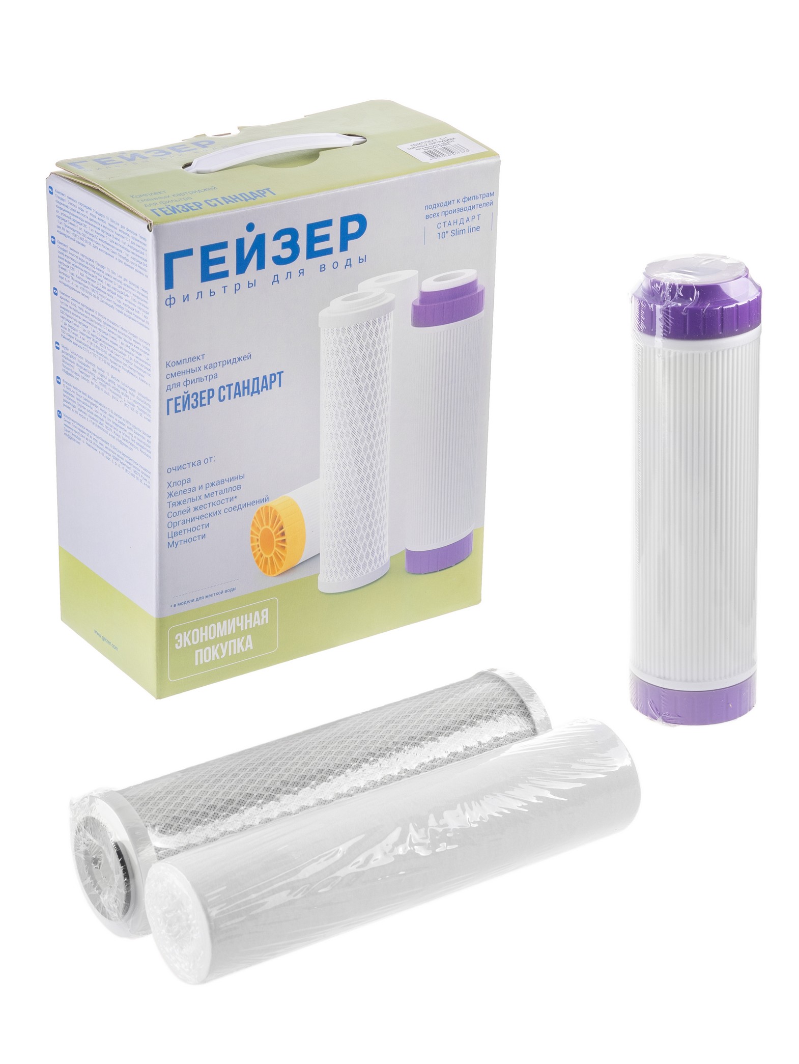Комплект сменных картриджей С-1 предназначен для фильтра Гейзер Стандарт для мягкой воды.