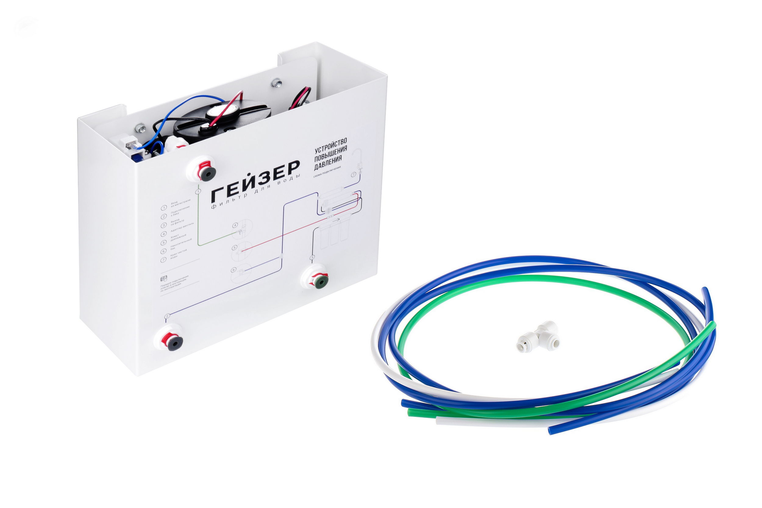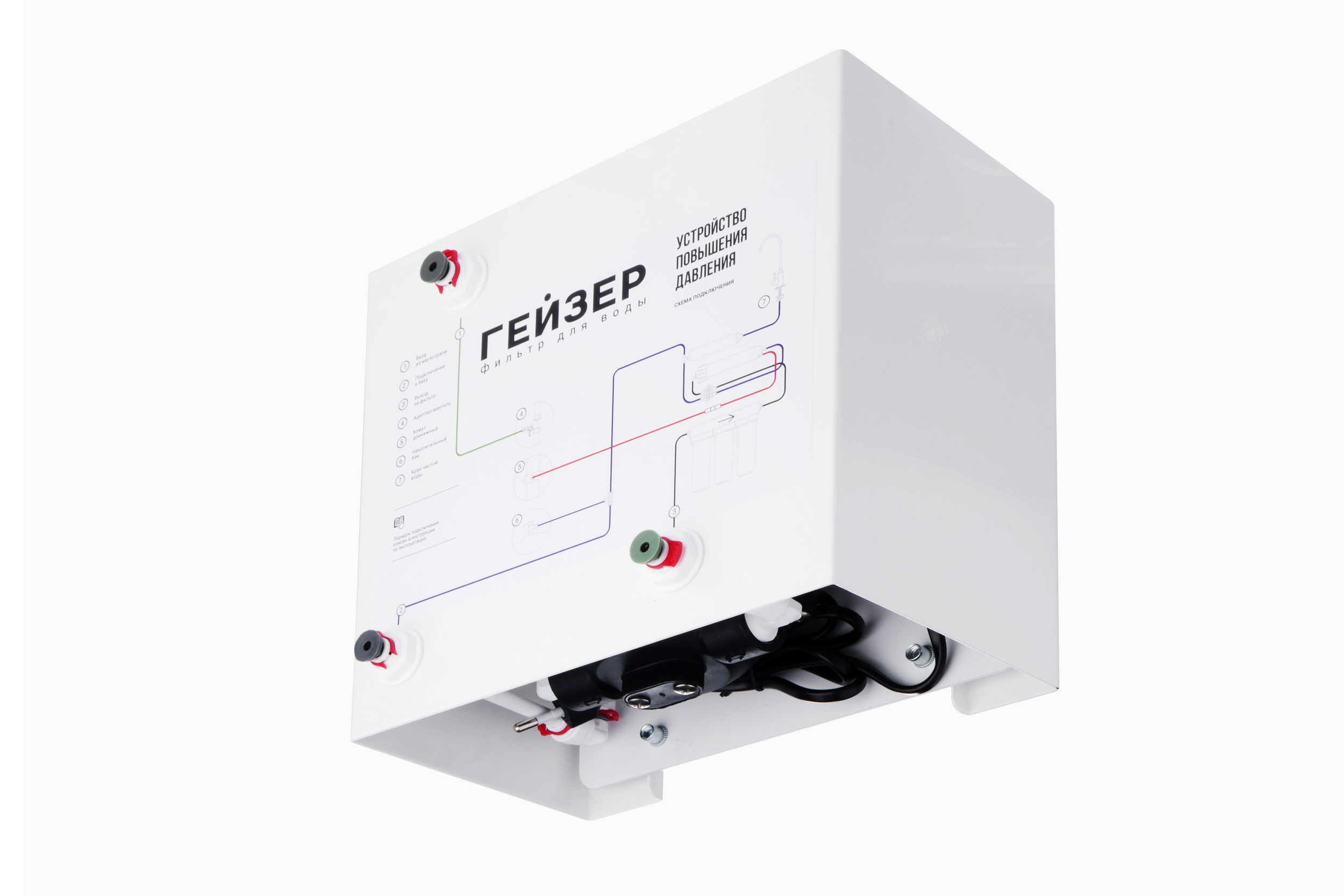 Устанавливается на магистраль холодной воды перед системой водоочистки. Компактный модуль включает помпу и все управляющие элементы.