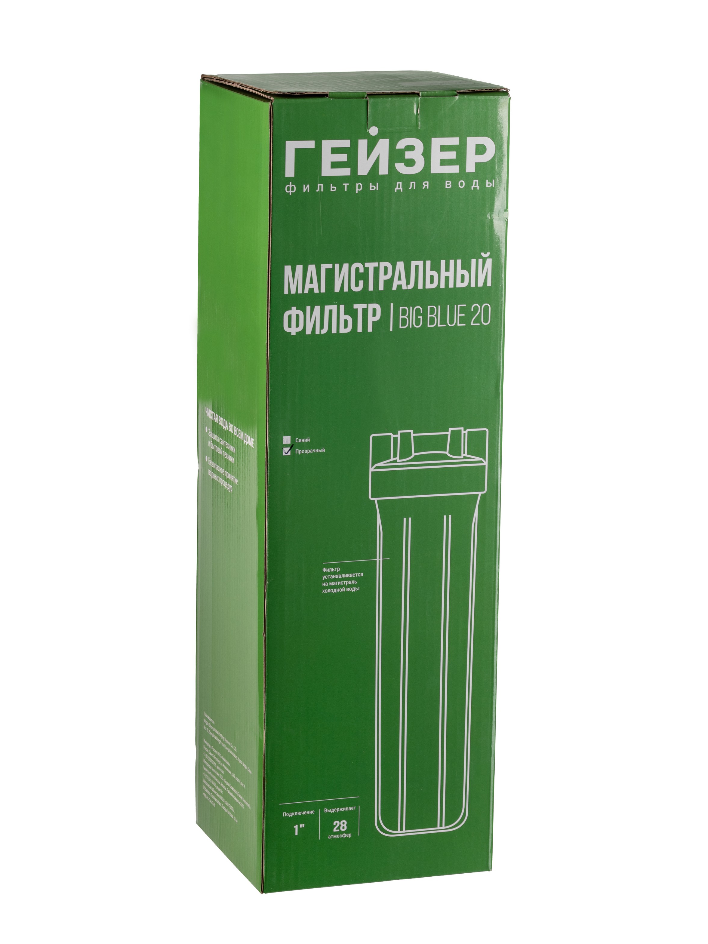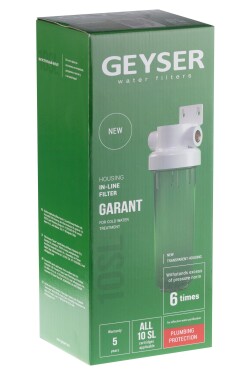 Корпус Гейзер 20BB прозрачный выполнен из ударопрочного пластика, рассчитан на работу под давлением и установку на входе в систему холодного водоснабжения. Фильтр может применяться как отдельно, так и в составе комплексных систем водоочистки и водоподготовки