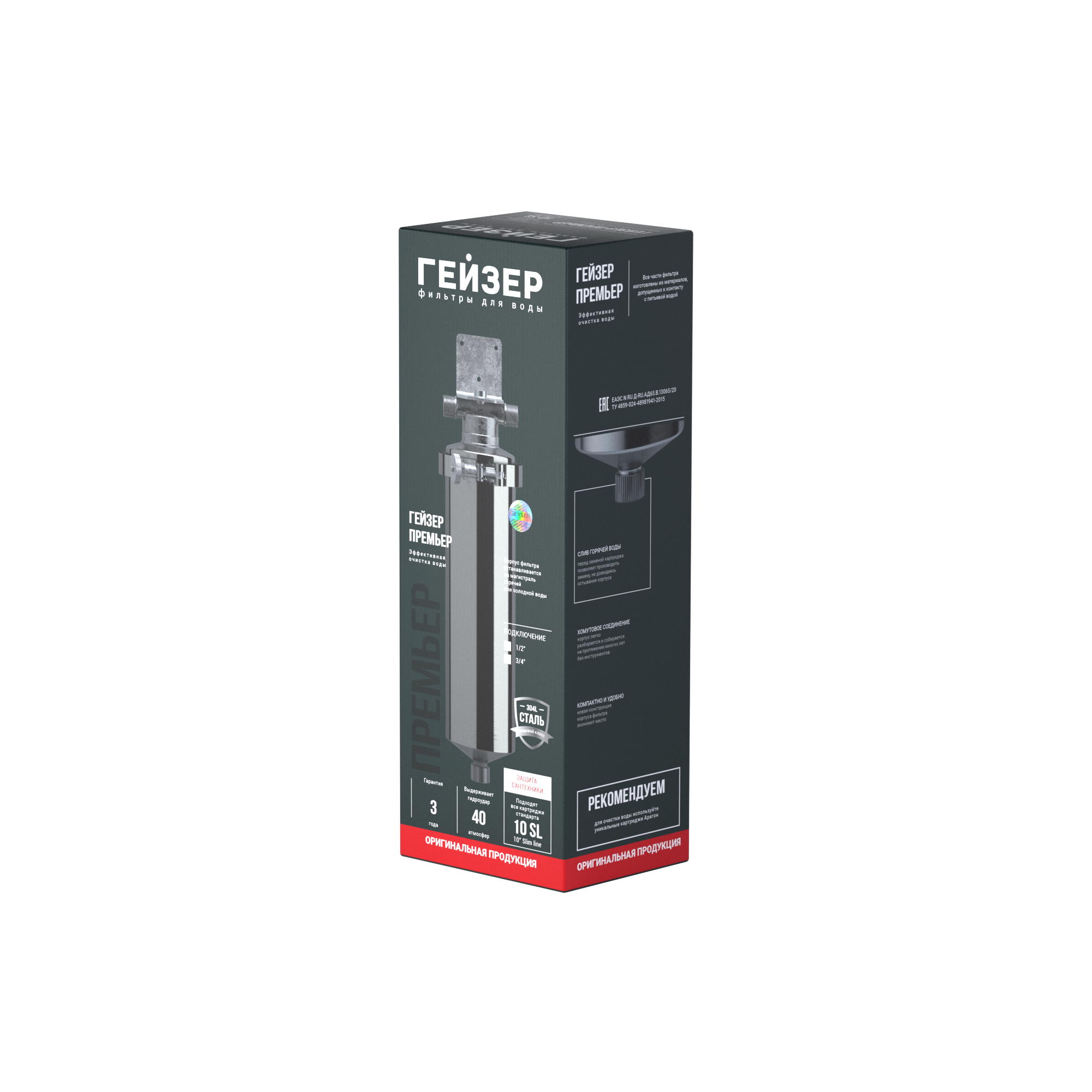Оригинальная продукция отличается наличием голограммы «GEYSER» и подписи в нижней части коробки.