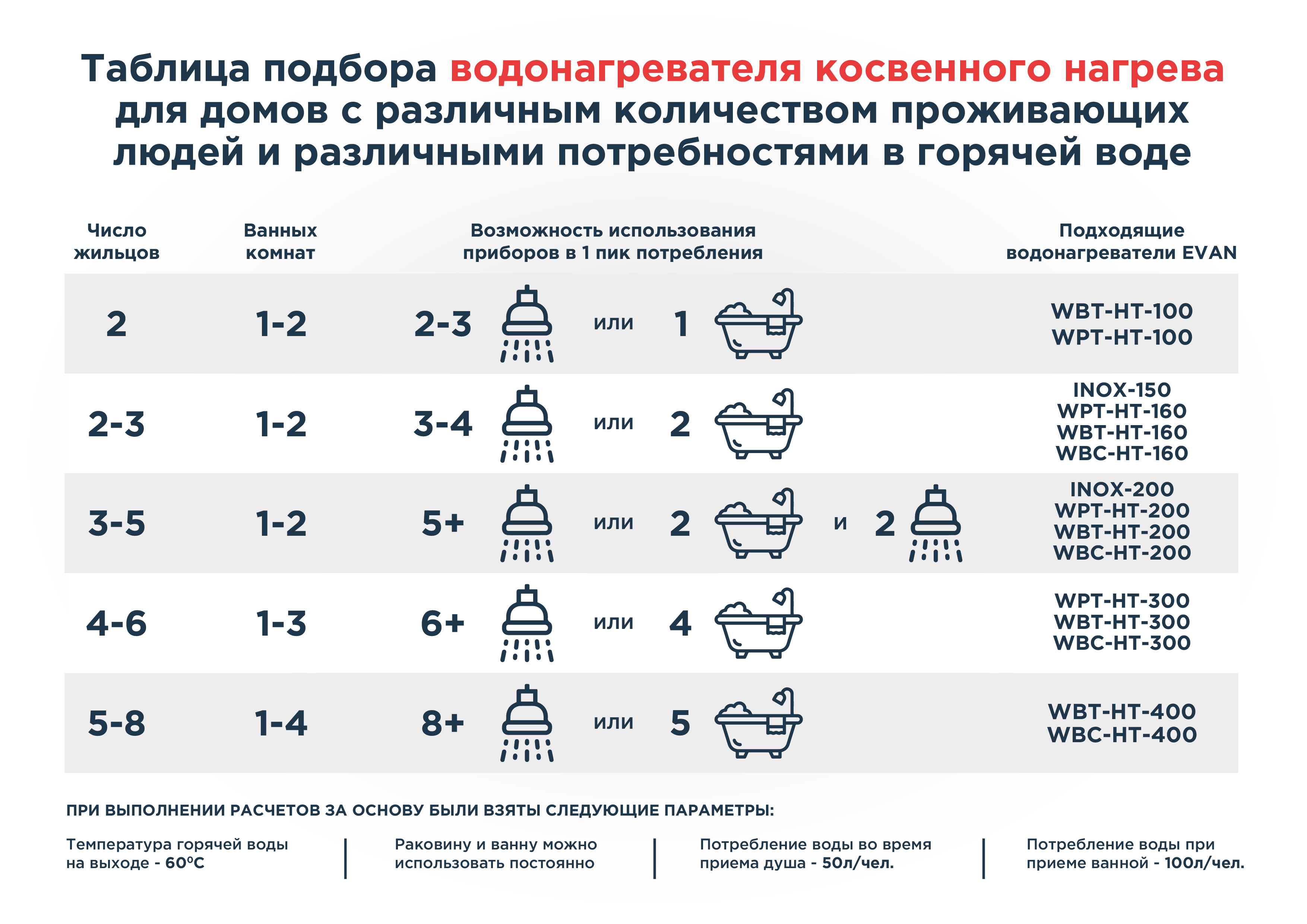 Можно одновременно использовать несколько точек водоразбора без скачков температуры воды. Главное правильно подобрать нужный объем воды.